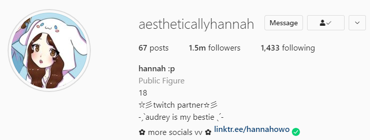 Penampakan akun instagram HannahOwO